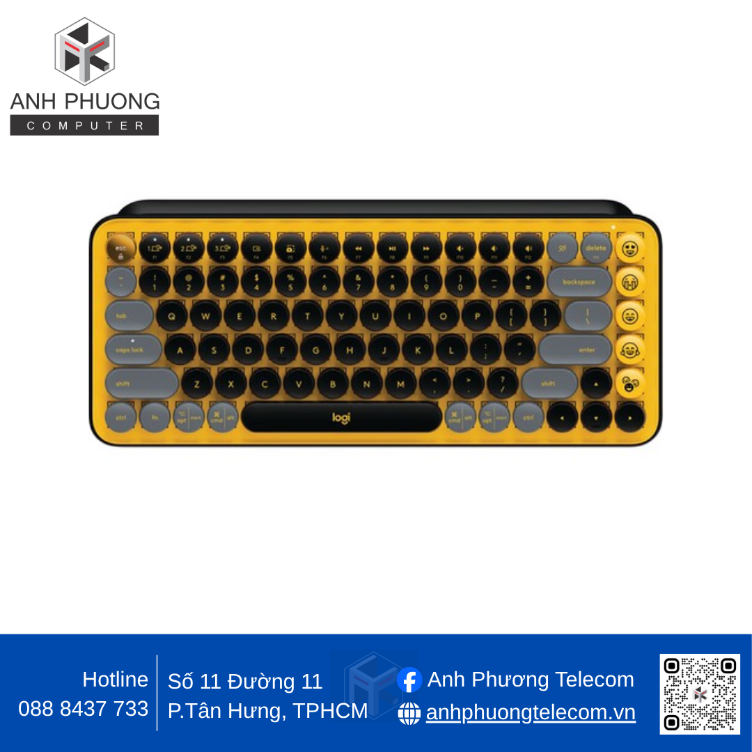 Bàn phím cơ không dây Logitech POP Keys (920-010577) (Vàng – đen) là kiểu bàn phím cơ học không dây có vẻ ngoài nhỏ gọn, màu sắc bắt mắt cùng công nghệ Bluetooth 5.0 hiện đại kết nối dễ dàng. Sản phẩm hứa hẹn cho người dùng những trải nghiệm gõ phím mượt mà và thoải mái trong quá trình làm việc hay giải trí trên máy tính. Thiết kế nhỏ gọn, độc đáo Bàn phím cơ không dây Logitech có được thiết kế nhỏ gọn với kích thước của bàn phím compact. Giúp tiết kiệm diện tích không gian bàn làm việc đồng thời có thể bỏ túi, balo hay cầm tay mang theo bất cứ nơi đâu để phục vụ nhu cầu làm việc hay giải trí cá nhân. Sự kết hợp hài hòa giữa các gam màu đen, xám và màu vàng của trò chơi arcade. Tất cả đã tạo nên cho chiếc bàn phím cơ không dây này một nét đẹp rất riêng, gây ấn tượng cho người dùng ngay từ cái nhìn đầu tiên. Mặc dù có kích thước nhỏ gọn nhưng bàn phím Logitech lại có thể đáp ứng tốt nhu cầu sử dụng của người dùng nhờ sở hữu tất cả các phím cơ bản của một chiếc bàn phím. Hơn nữa, các phím còn được thiết kế lõm bo tròn tinh tế, tạo cảm giác êm ái và mượt mà mỗi khi lướt phím. Với kiểu switch TTC Tactile Switch Brown, bàn phím không dây Logitech POP Keys mang đến trải nghiệm gõ nhanh nhạy, cảm nhận từng cú nảy ngón tay trên phím. Đi kèm theo đó chính là tiếng lách cách vô cùng hấp dẫn của những chiếc phím switch cơ mỗi lần nhấn. Đặc biệt, bàn phím không dây này với trang bị 8 phím emoji như vui vẻ, giận dữ, … hoán đổi dễ dàng để thể hiện tâm trạng của người dùng. Cùng với 12 phím tắt FN mới giúp bạn thao tác nhanh chóng các tác vụ cơ bản như cắt màn hình, tắt tiếng cho mic… Chỉ với phần mềm Logitech hay gõ vào phím menu emoji là bạn có thể thỏa sức chọn emoji phù hợp nhất trong các cuộc trò chuyện. Tuy nhiên, hiện tại phần mềm Logitech và emoji của chiếc bàn phím cơ không dây này chỉ được hỗ trợ trên hai hệ điều hành Windows và macOS. Bàn phím không dây Logitech POP Keys người dùng sẽ có thể ghép cặp lên đến 3 thiết bị và dễ dàng chuyển đổi qua lại giữa chúng chỉ với một lần chạm. Đồng thời, các phím Easy Switch trang bị trên bàn phím cho phép bạn thể hiện cá tính của bản thân trên nhiều thiết bị cùng một lúc. Đồng thời, với công nghệ truyền phát không dây hiện đại Bluetooth 5.0 tích hợp trên bàn phím cơ không dây. Bạn sẽ dễ dàng kết nối chiếc bàn phím với các thiết bị khác của mình như máy tính, điện thoại thông minh, máy tính bảng…một cách nhanh chóng. Ngoài ra bàn phím cơ này còn tích hợp 2 viên pin AAA, đem đến thời gian sử dụng lâu dài, bền bỉ và đáng tin cậy. Đồng thời, cung cấp năng lượng một cách an toàn cho thiết bị trong quá trình sử dụng.