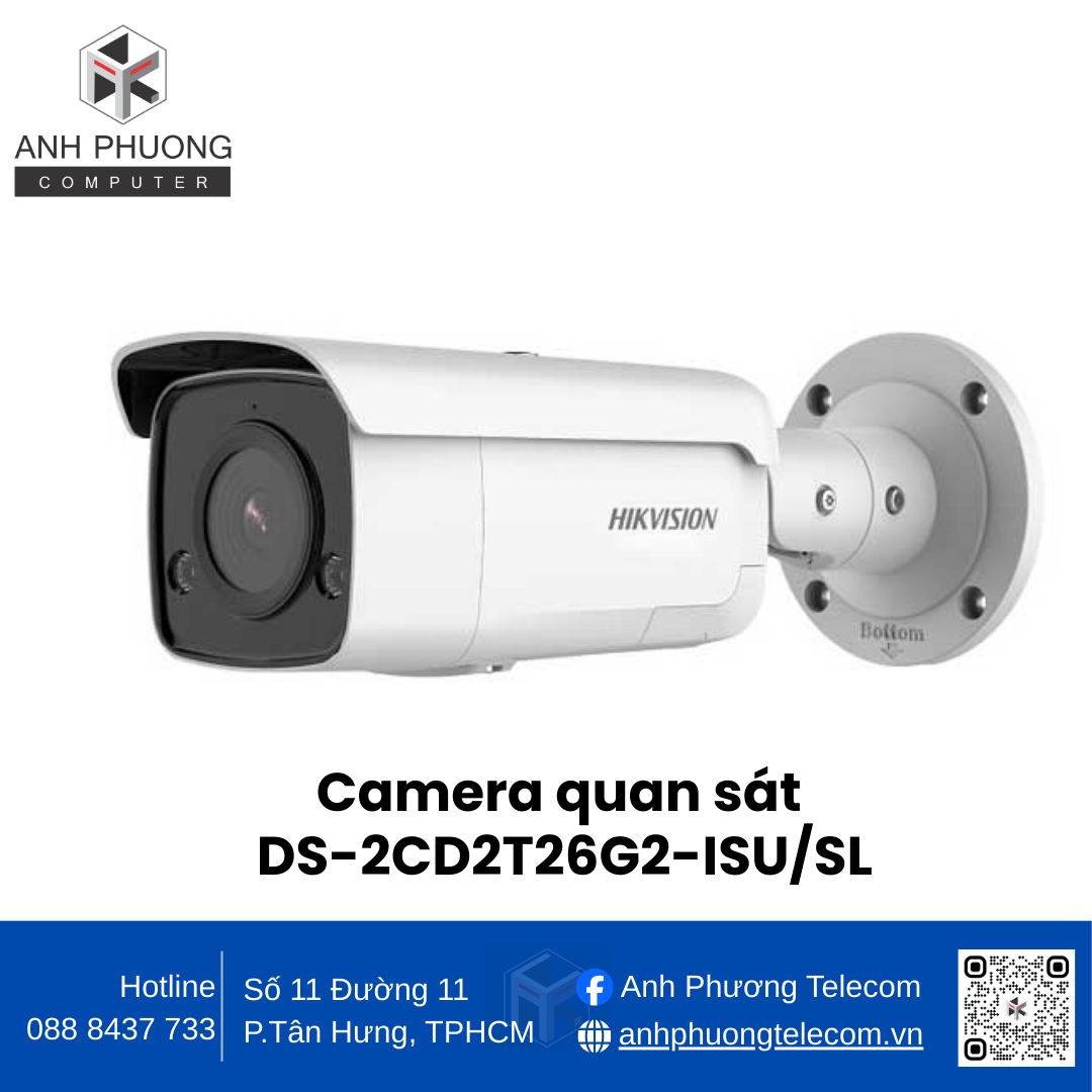 Camera Hikvision DS-2CD2T26G2-ISU/SL là dòng camera IP thân trụ thuộc series AcuSense của Hikvision, nổi bật với khả năng phân biệt người và phương tiện, kết hợp đèn cảnh báo và còi hú giúp tăng cường an ninh chủ động.