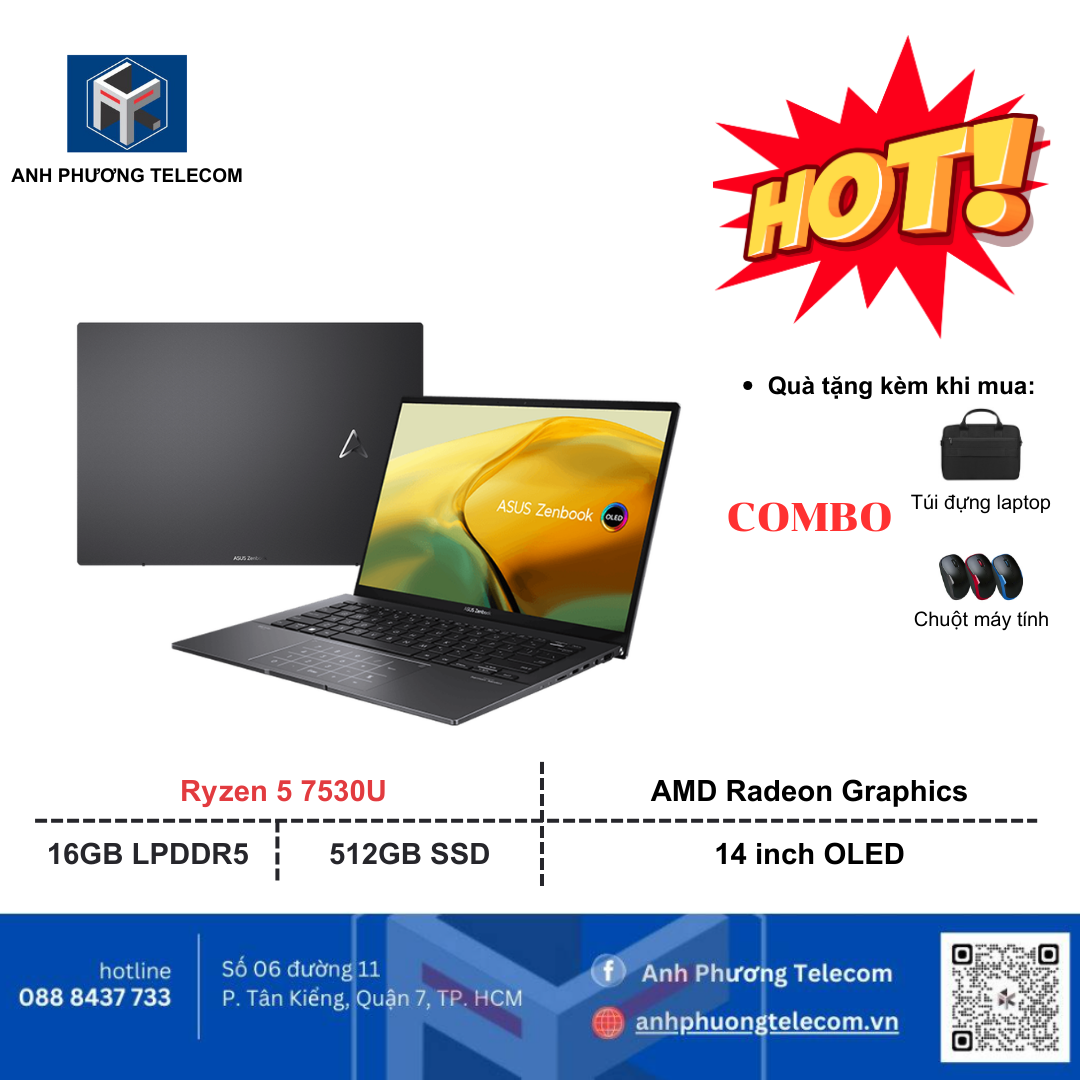 Laptop ASUS Zenbook 14 OLED UM3402YA KM405W (Ryzen 5 7530U/ RAM 16GB/ Onboard graphics/ 512GB SSD/ Windows 11)