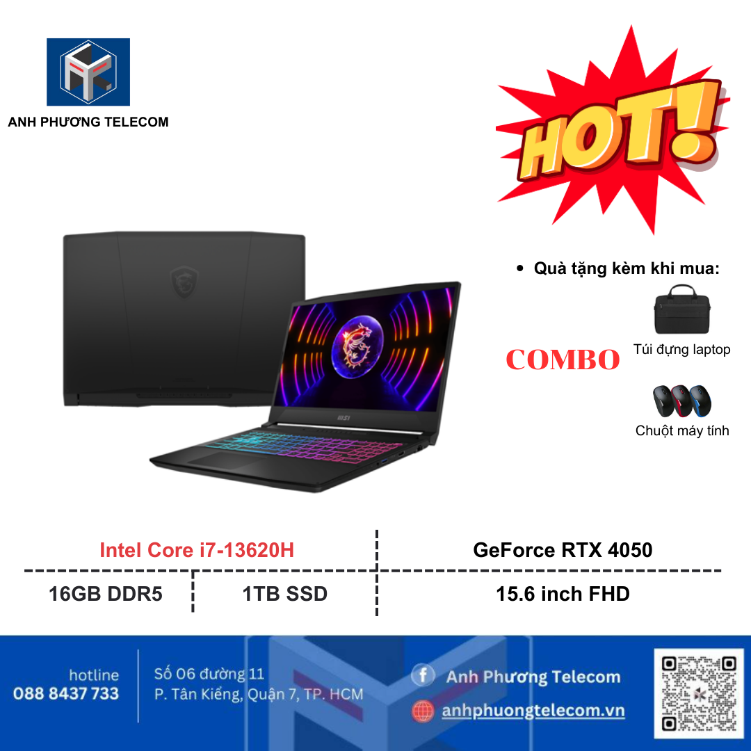 Laptop Gaming MSI Katana 15 B13VEK 252VN (i7-13620H/ 16GB DDR5/ SSD 1TB/ RTX 4050/ 15.6″ FHD)