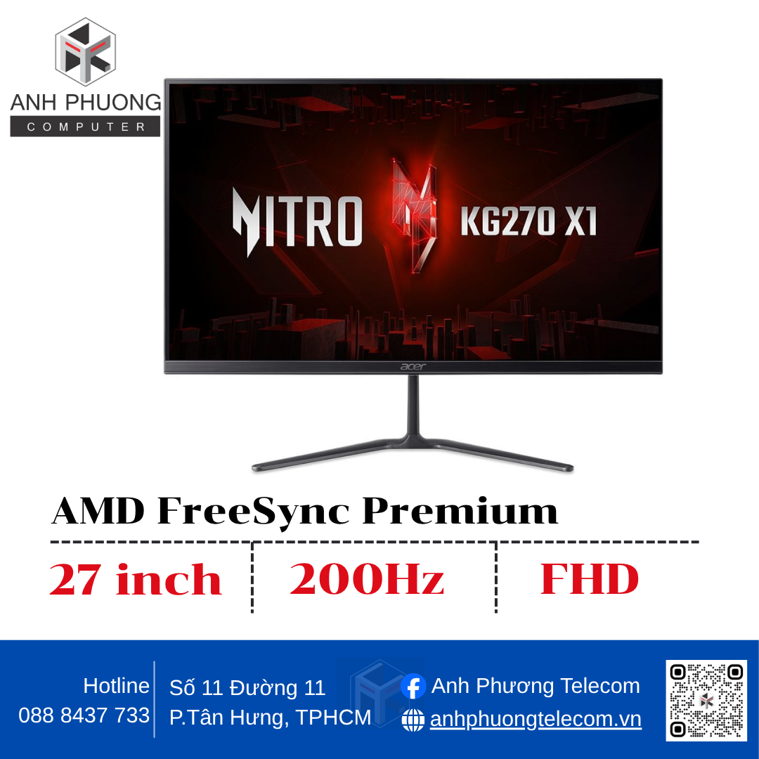 Acer KG270-X1 là chiếc màn hình chuyên game có cấu hình nổi bật: tần số quét lên đến 200Hz, tấm nền IPS sắc nét và hỗ trợ G-Sync giúp hiển thị cực mượt, không xé hình khi chơi các tựa game hành động nhanh. Với kích thước 27 inch, đây là lựa chọn đáng giá trong tầm giá cho game thủ FPS, MOBA và streamer. Gấp 3 lần tốc độ làm mới so với màn 60Hz thông thường Rất lý tưởng cho game thủ FPS như CS2, Valorant, Apex Legends Chuyển động mượt, giảm motion blur, tăng phản xạ chính xác Tương thích G-Sync của NVIDIA giúp đồng bộ khung hình giữa GPU và màn hình Loại bỏ hiện tượng tearing/stuttering – nhất là khi chơi game tốc độ cao Mang lại trải nghiệm liền mạch và ổn định hơn với mọi khung hình IPS cho hình ảnh rõ nét, trung thực từ mọi góc độ (178°) Hiển thị đồng đều, không sai màu như tấm nền TN Phù hợp cả cho làm đồ họa cơ bản, xem phim hoặc stream nội dung BlueLightShield giúp giảm ánh sáng xanh Flicker-less loại bỏ hiện tượng nhấp nháy Viền mỏng 3 cạnh tạo cảm giác không gian rộng hơn Dễ dàng kết hợp 2-3 màn hình cho trải nghiệm bao quát hoặc làm việc đa nhiệm Game thủ FPS, MOBA, đối kháng cần phản xạ nhanh Người làm nội dung giải trí hoặc stream game Người học/làm việc nhiều cần màn hình rộng, bảo vệ mắt Người cần màn hình IPS 27 inch mượt – giá tốt Acer KG270-X1 27″ IPS 200Hz G-Sync là chiếc màn hình gaming hiệu năng cao, thiết kế hiện đại và giá bán rất cạnh tranh. Với tần số quét cực cao, công nghệ đồng bộ hình ảnh và hiển thị sắc nét, sản phẩm này hoàn toàn xứng đáng trở thành lựa chọn chủ lực trong mọi góc chơi game chuyên nghiệp hay không gian làm việc hiện đại. Hãy liên hệ với Anh Phương Telecom qua hotline 088 843 7733 hoặc đến ngay cửa hàng để được tư vấn chi tiết và trải nghiệm sản phẩm trực tiếp. Xem thêm thông tin chi tiết và đánh giá qua: https://www.facebook.com/AnhphuongtelecomQuan7