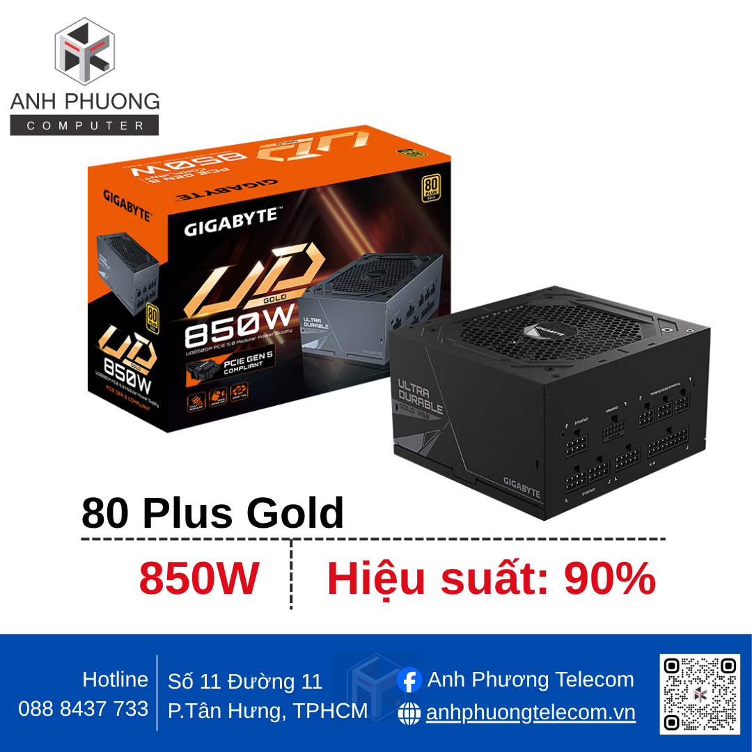 Nguồn máy tính GIGABYTE UD850GM – 80 Plus Gold – Full Modular (850W)
