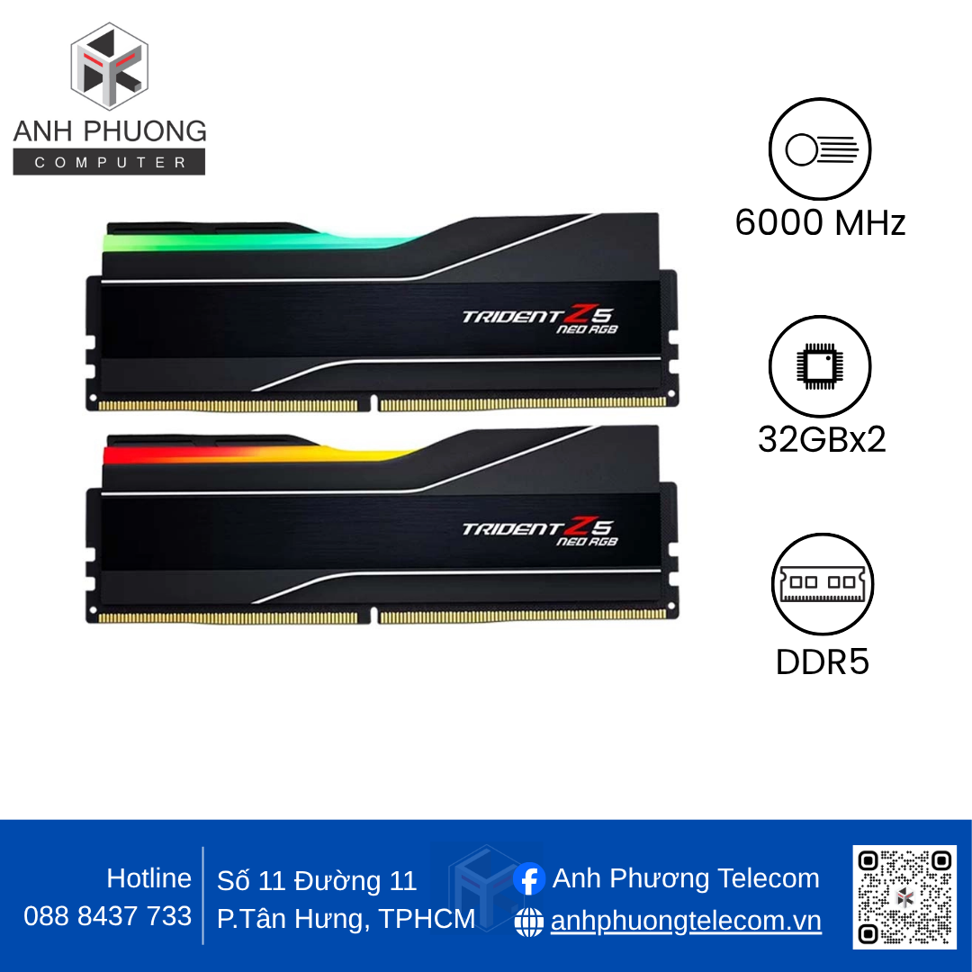 RAM desktop G.SKILL Trident Z5 Neo (2 x 32GB) DDR5 6000MHz (F5-6000J3238G32GX2-TZ5NR)