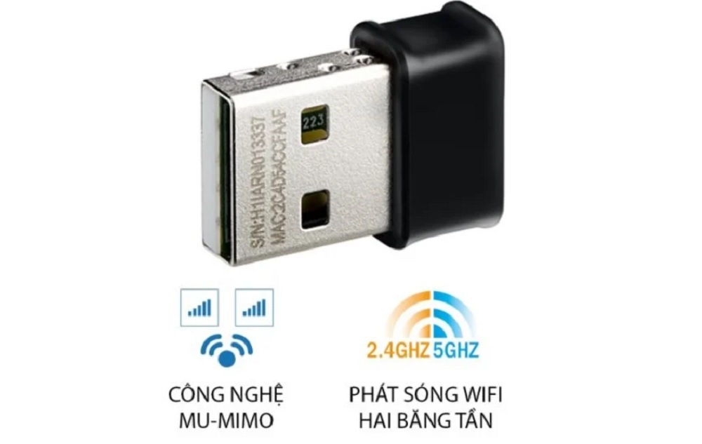 ASUS USB-AC53 Nano là thiết bị thu sóng WiFi chuẩn AC1200 cực kỳ nhỏ gọn, thiết kế dạng nano USB tiện lợi cho laptop, PC hoặc mini PC không có WiFi. Hỗ trợ băng tần kép (2.4GHz + 5GHz), tương thích tốt với chuẩn WiFi 802.11ac hiện nay, giúp người dùng dễ dàng nâng cấp WiFi tốc độ cao mà không cần mở máy hay lắp card PCIe. Thiết kế siêu nhỏ – Luôn cắm sẵn không vướng víu Chuẩn WiFi AC1200 – Kết nối ổn định, tốc độ cao Dễ sử dụng – Cắm là nhận (Plug & Play) Tương thích đa hệ điều hành ASUS USB-AC53 Nano là giải pháp nâng cấp WiFi hoàn hảo, nhanh chóng và gọn nhẹ cho những ai đang dùng PC hoặc laptop không có WiFi 5GHz. Với thiết kế siêu nhỏ, hiệu năng ổn định và độ bền cao từ thương hiệu ASUS, đây là sản phẩm rất đáng mua trong phân khúc USB WiFi dưới 1 triệu đồng.